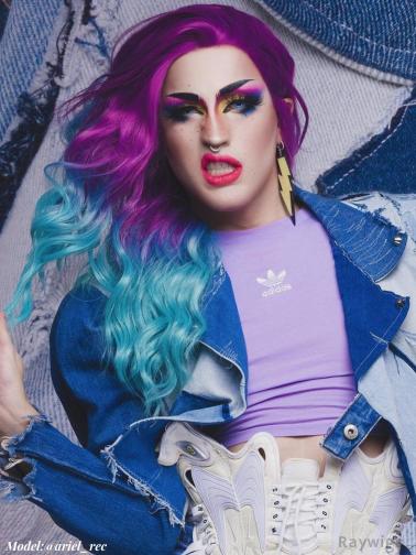 Hot Rainbow Color Drag Queen Stage Costume Wig - Style - Neon