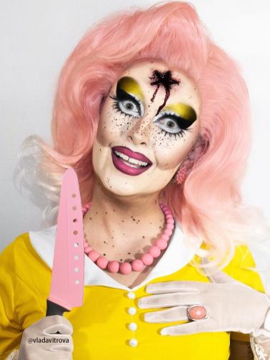 Blue Dip Dye with Brown Root Color Drag Wig - Style - Olivia