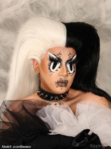 Half Black Half White Gothic Drag Wig - Style - Neon