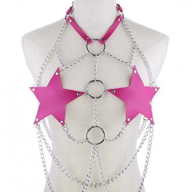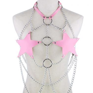 Pink Body Cage Harness Bra Metal Chain Rave Costume