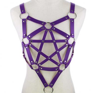 Purple Harness Punk Adjustable Garter Belt Body Caged with Metal Chain Tassel