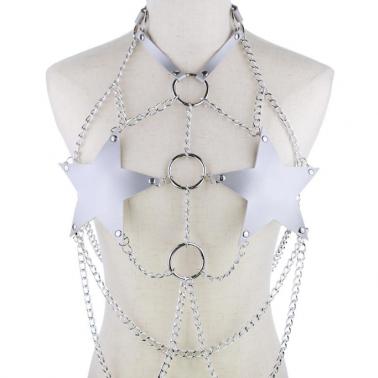 Silver Body Cage Harness Bra Metal Chain Rave Costume