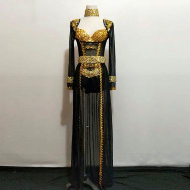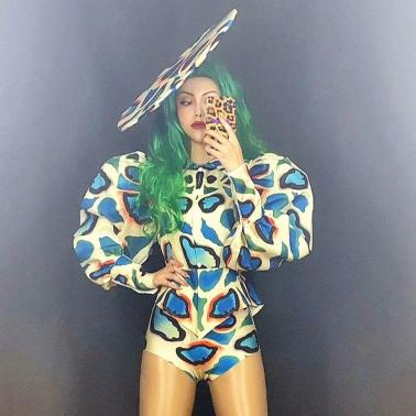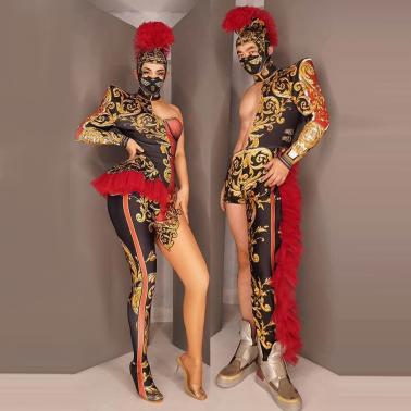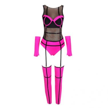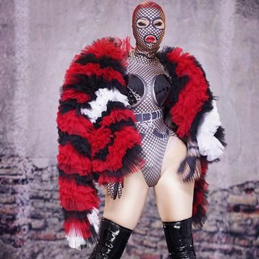 Red Long Fringe Crystallized Bodysuit(Handmade)