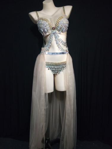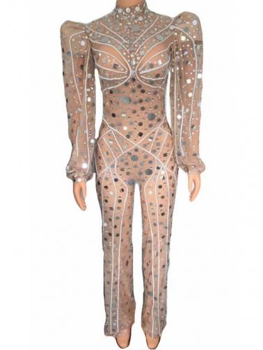 White Sequins & Mesh Puff Sleeve Bodysuit