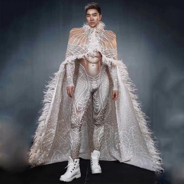 Strethcable Jumpsuit with Long Feather Cloak Men's Version