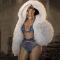 This hoodie coat is totally white and short while sleeves are long. It is made of multideck transparent plicated tulle and looks fluffy.