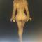 This bodysuit is skincolor and shoulder- off. It has a high collar filled with rhinestones like a superb necklace and long mandarin sleeves. It is decorated with gold sparkly rhinestones that arranged in string on back while in delicate pattern like sun and figures in front. They make it shiny, glorious and mysterious.