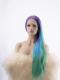 Purple to Blue to Green Hip Length Straight Drag Wig - Style - Neon